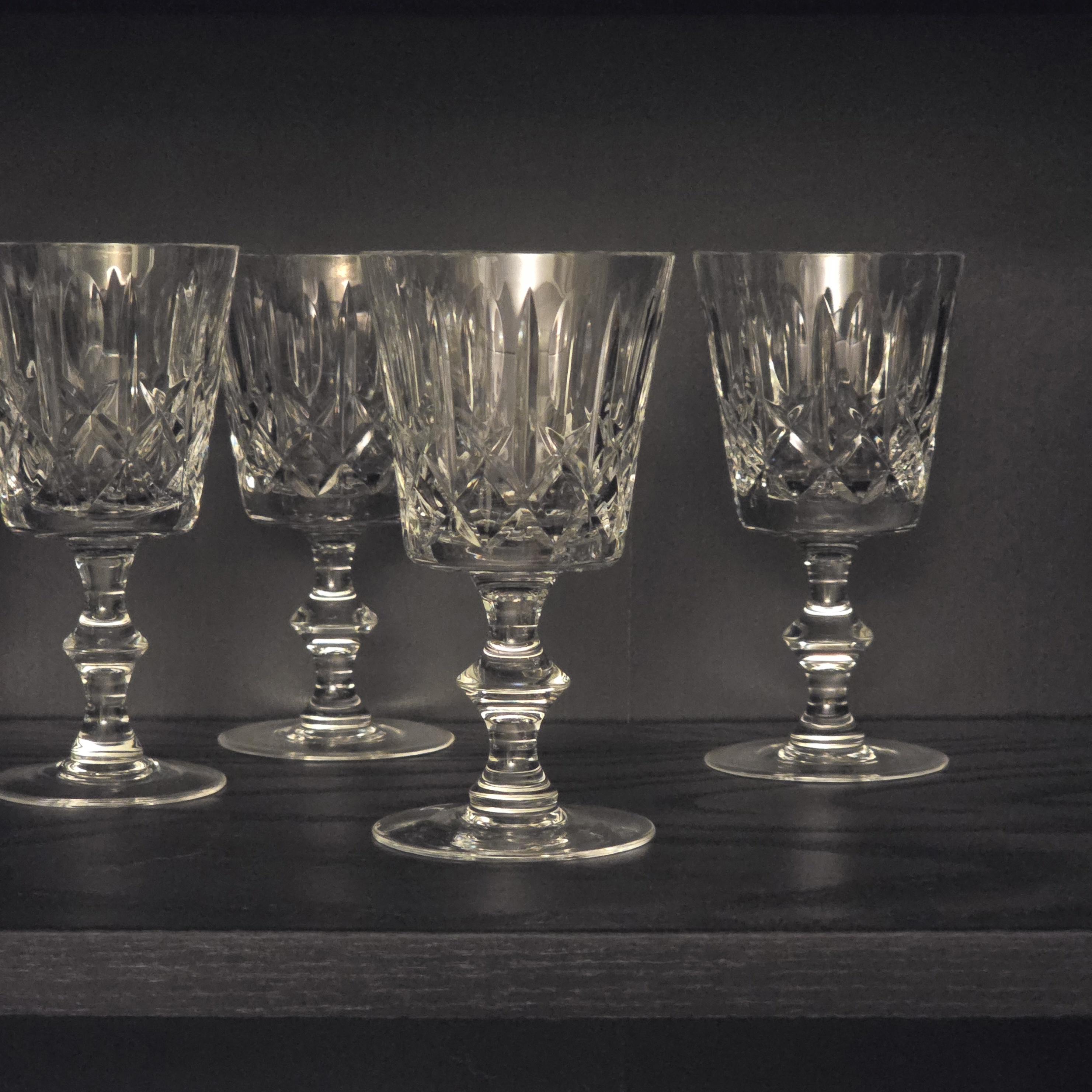 Widely produced in Europe during the late twentieth century, the cross and olive cut is a traditional motif associated with Irish style crystal, defined by elongated oval cuts paired with structured diamond crosses for balanced light refraction. As this pattern was produced over an extended period by various manufacturers, slight variations in stem thickness, weight, and cut size may occur.