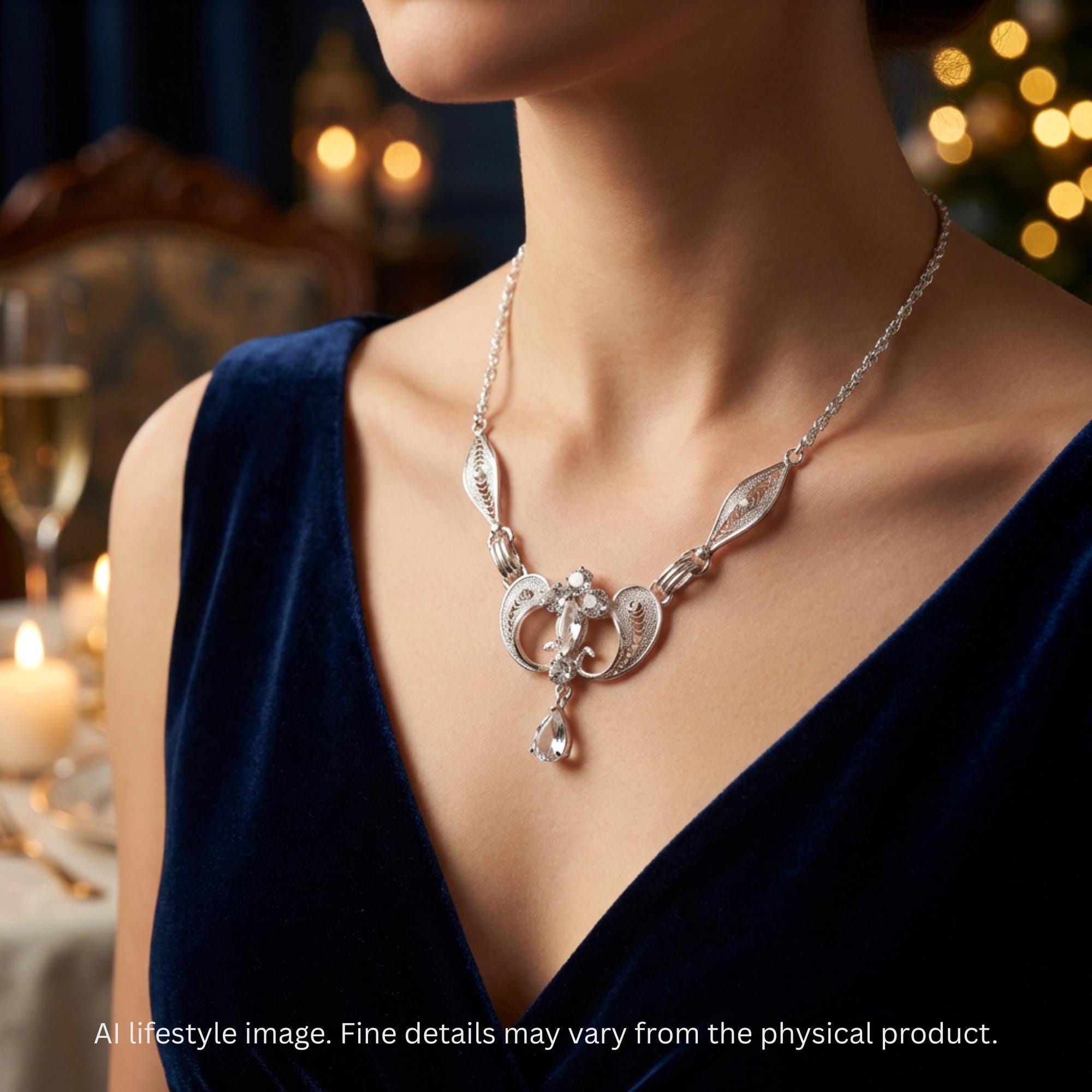• Pendant width: 7.62 cm (3 in) including the filigree parts