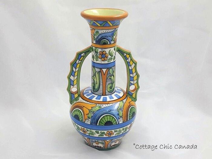 Mid Century Italian Majolica Vase – Hand Painted Deruta Pottery by SACA – Italy