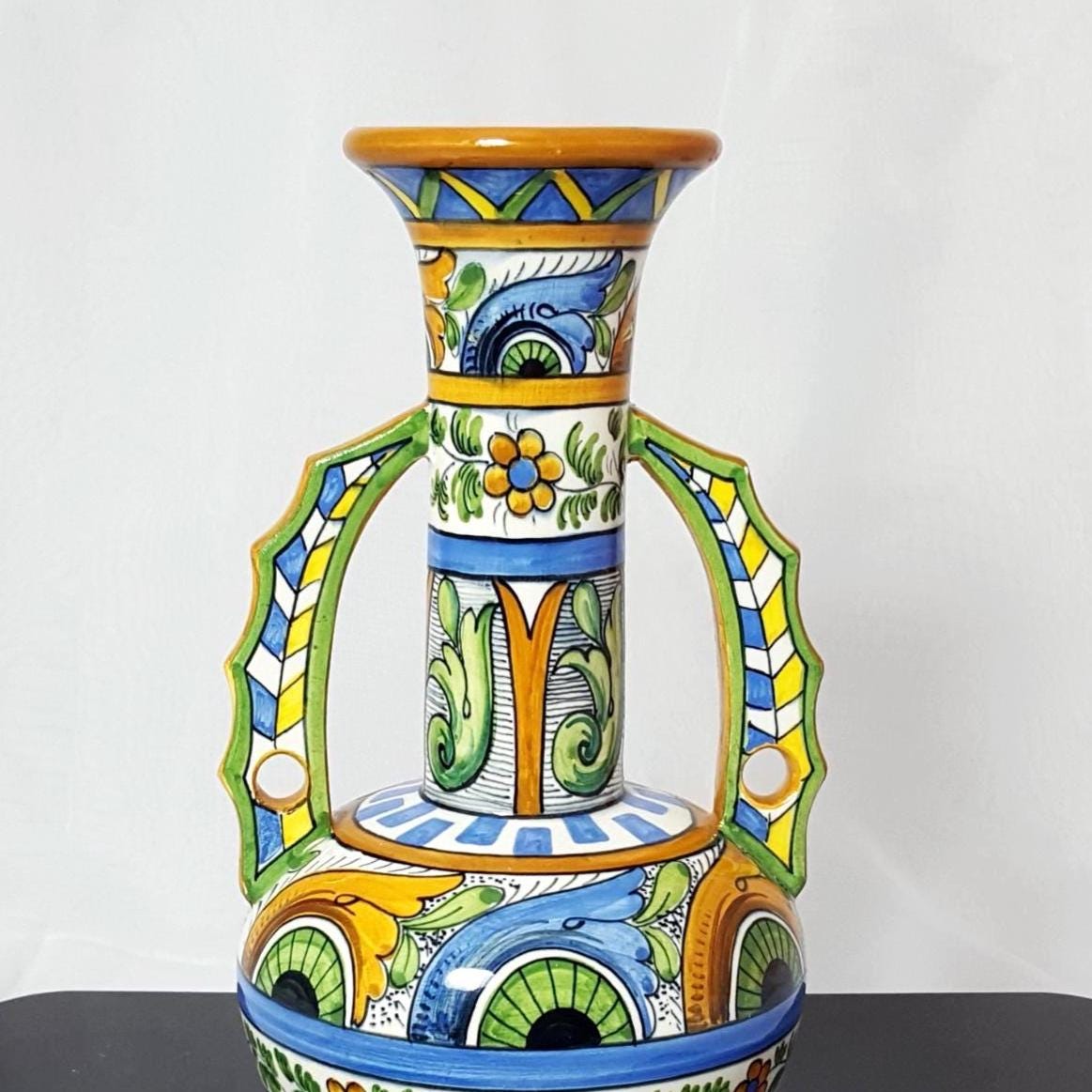 Mid Century Italian Majolica Vase – Hand Painted Deruta Pottery by SACA Italy