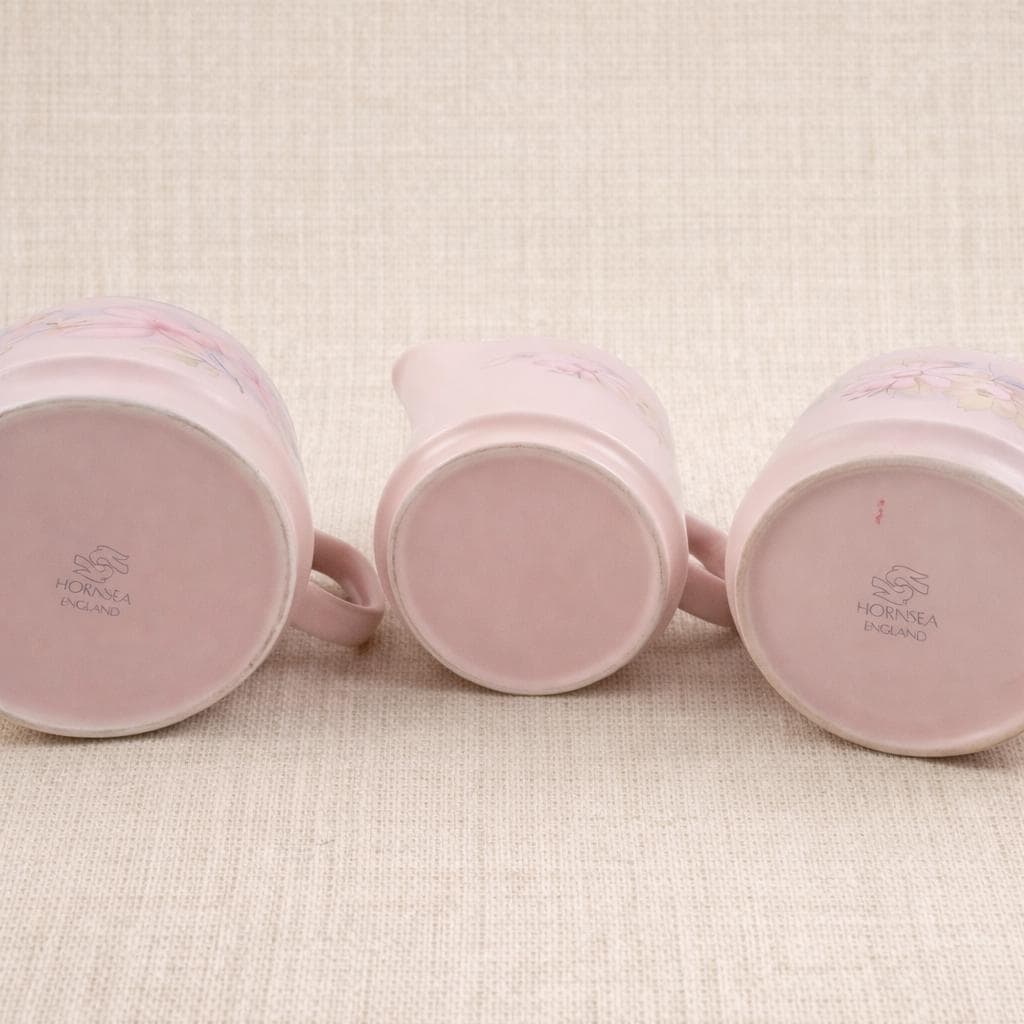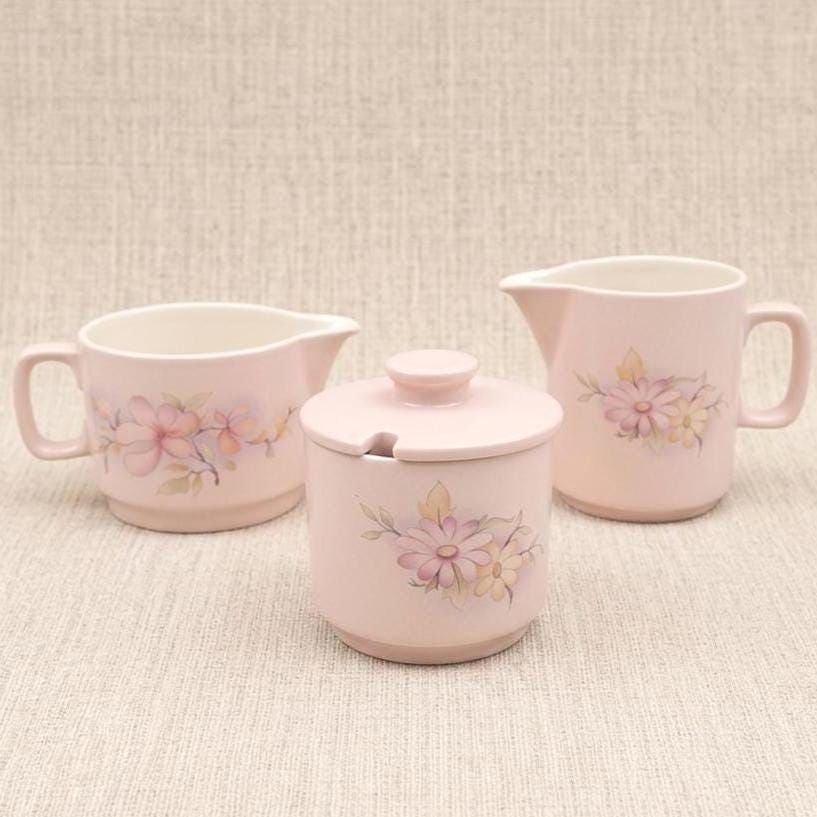 Vintage Hornsea Pottery Pastel Pink Floral Tea Set Creamer Sugar Bowl Milk Jug England