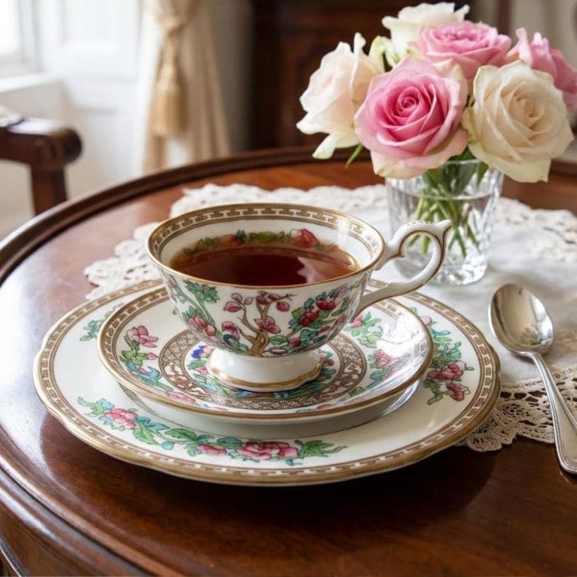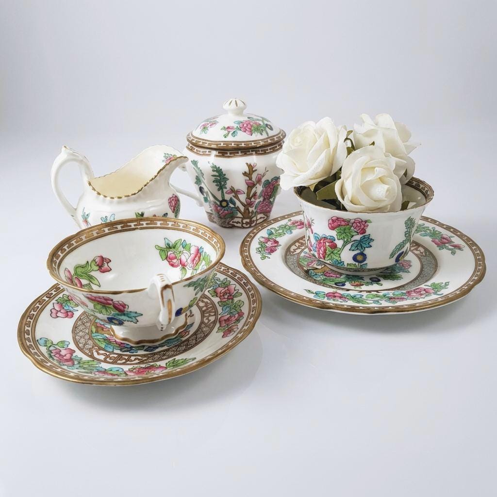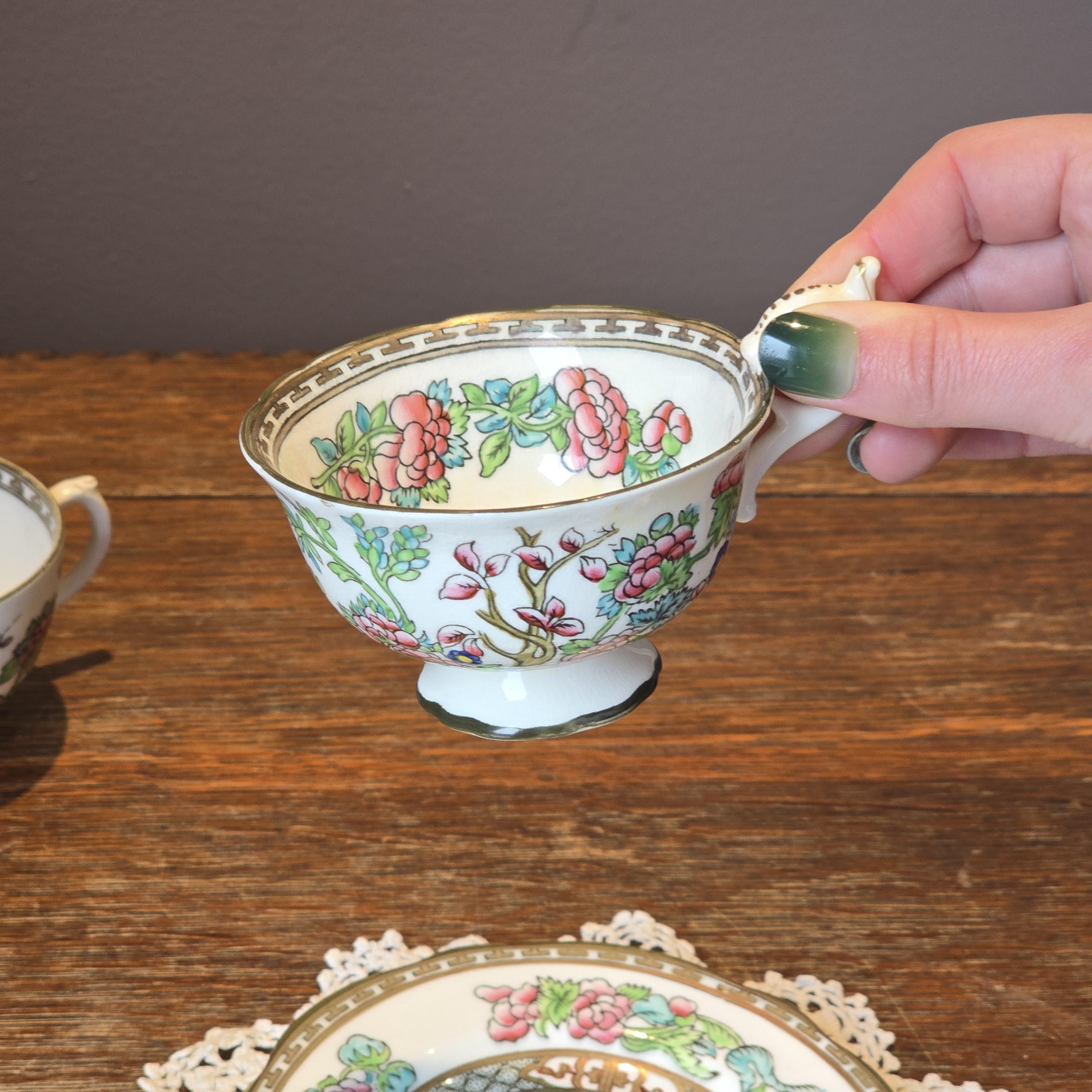Coalport’s Indian Tree pattern draws inspiration from earlier Chinese Tree of Life designs and became one of the most enduring motifs in English ceramics. The “A.D. 1750” backstamp reflects the company’s historic founding date, with this trio produced circa 1891 to 1919 during a strong period of bone china craftsmanship.