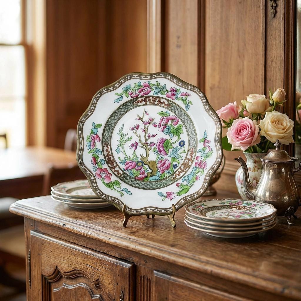 Coalport’s Indian Tree pattern has remained in production across multiple eras, making backstamps essential for accurate dating. Earlier examples are especially sought after for their delicate potting and historic mark variations within this enduring English design.