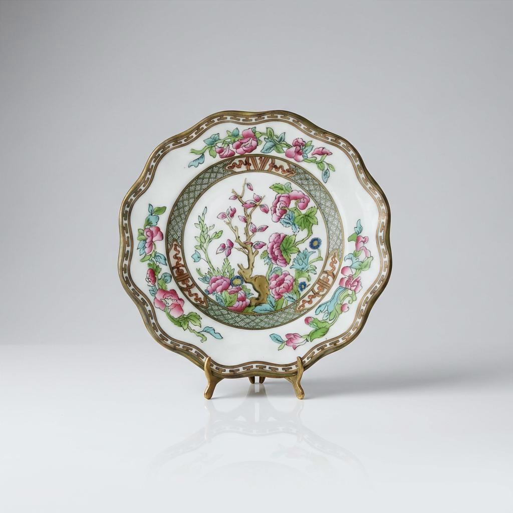 • Decoration: Indian Tree multicolor floral motif with scalloped edge and hand painted trim