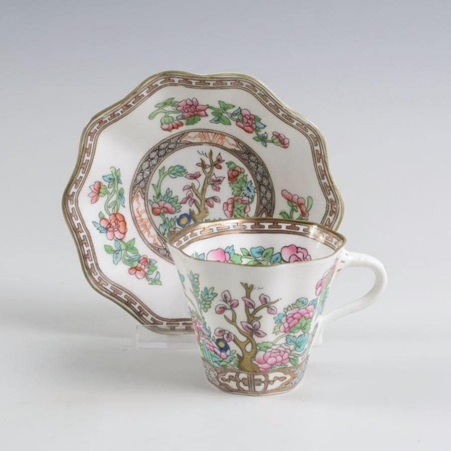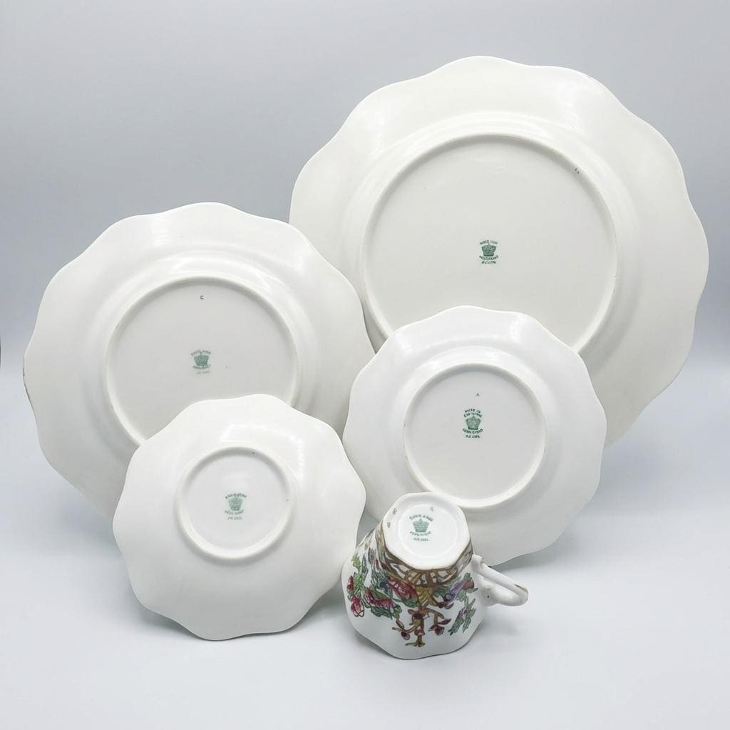 Established in 1750, Coalport earned distinction for richly enameled and gilt decorated porcelain. The Indian Tree pattern, inspired by Imari motifs, became one of its most enduring designs. The multicolor variation, introduced in the late Victorian period, is especially valued for its vibrant palette and detailed enamel work. Two early backstamps date this set to the transitional years between the late nineteenth and early twentieth centuries, strengthening its collector appeal.