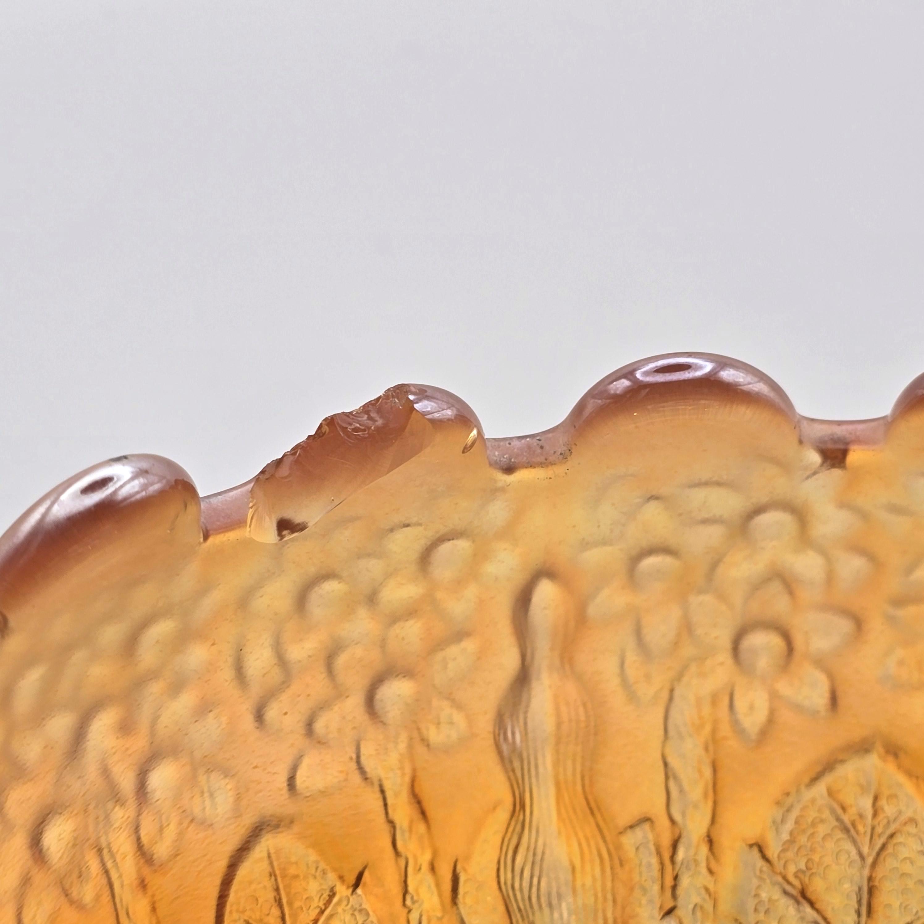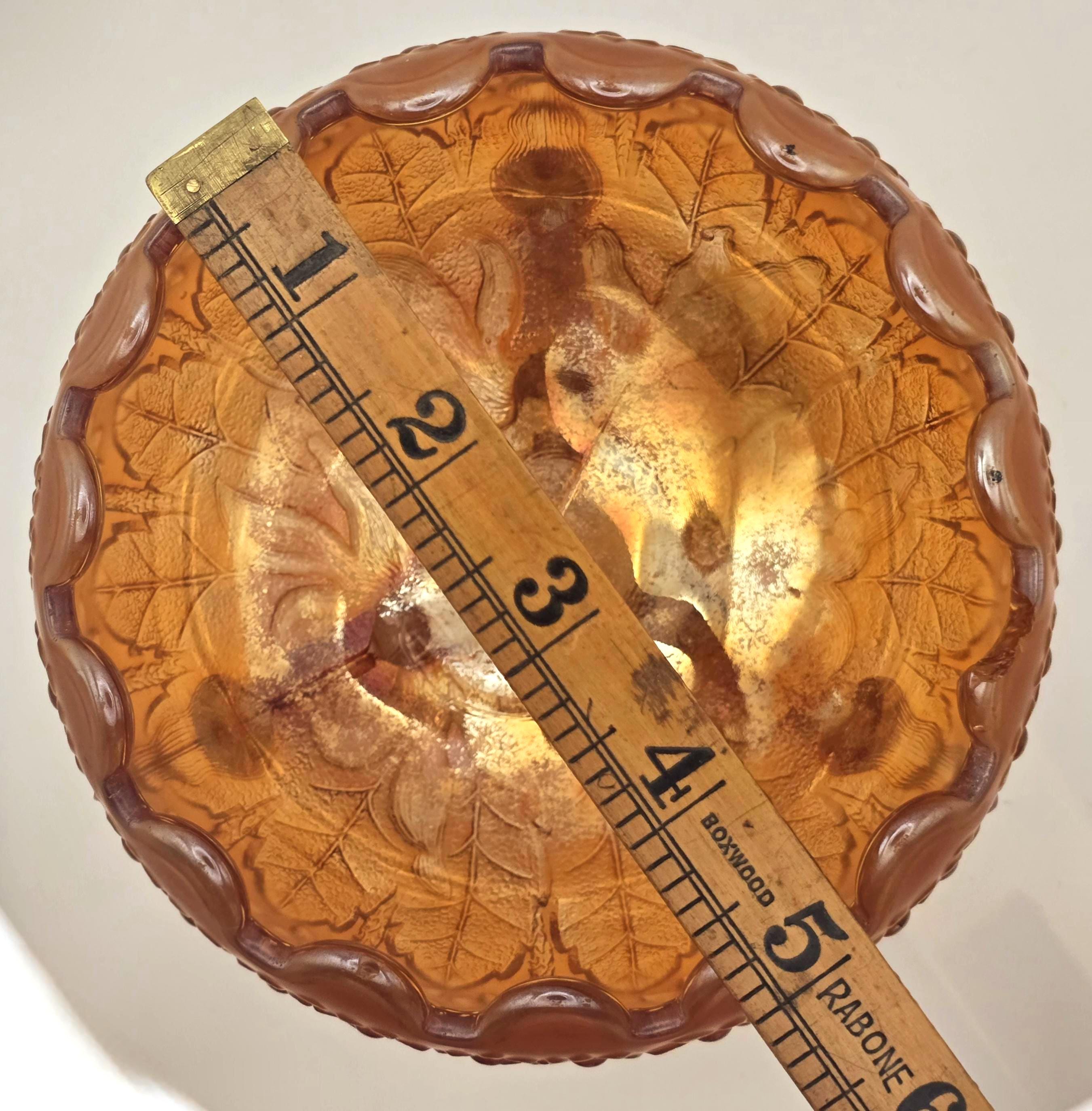Introduced in the early years of carnival glass production, the Orange Tree pattern became one of Fenton’s most collected designs. Produced circa 1911, this example reflects the company’s mastery of pressed glass, prized for its luminous marigold finish and crisp molded detail.