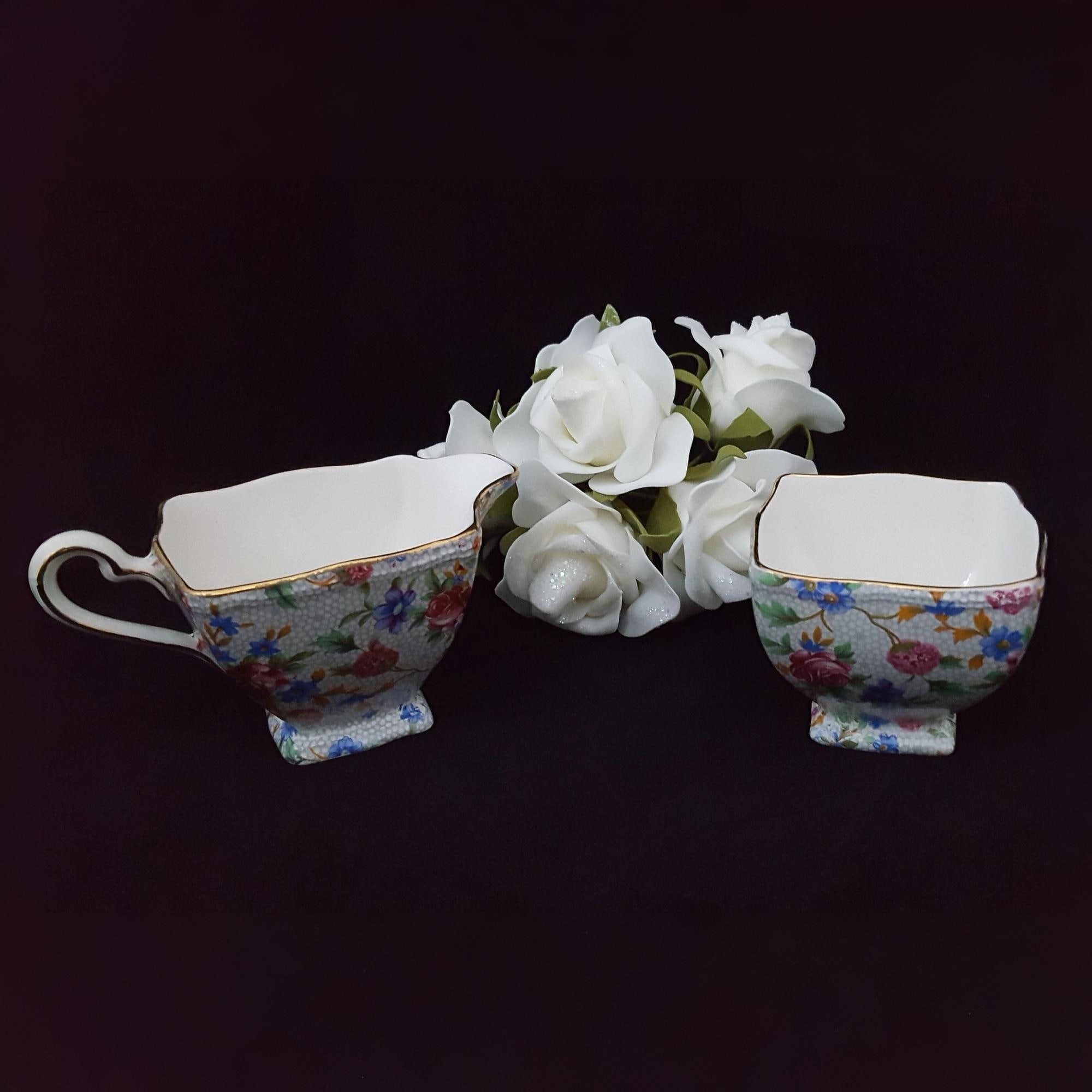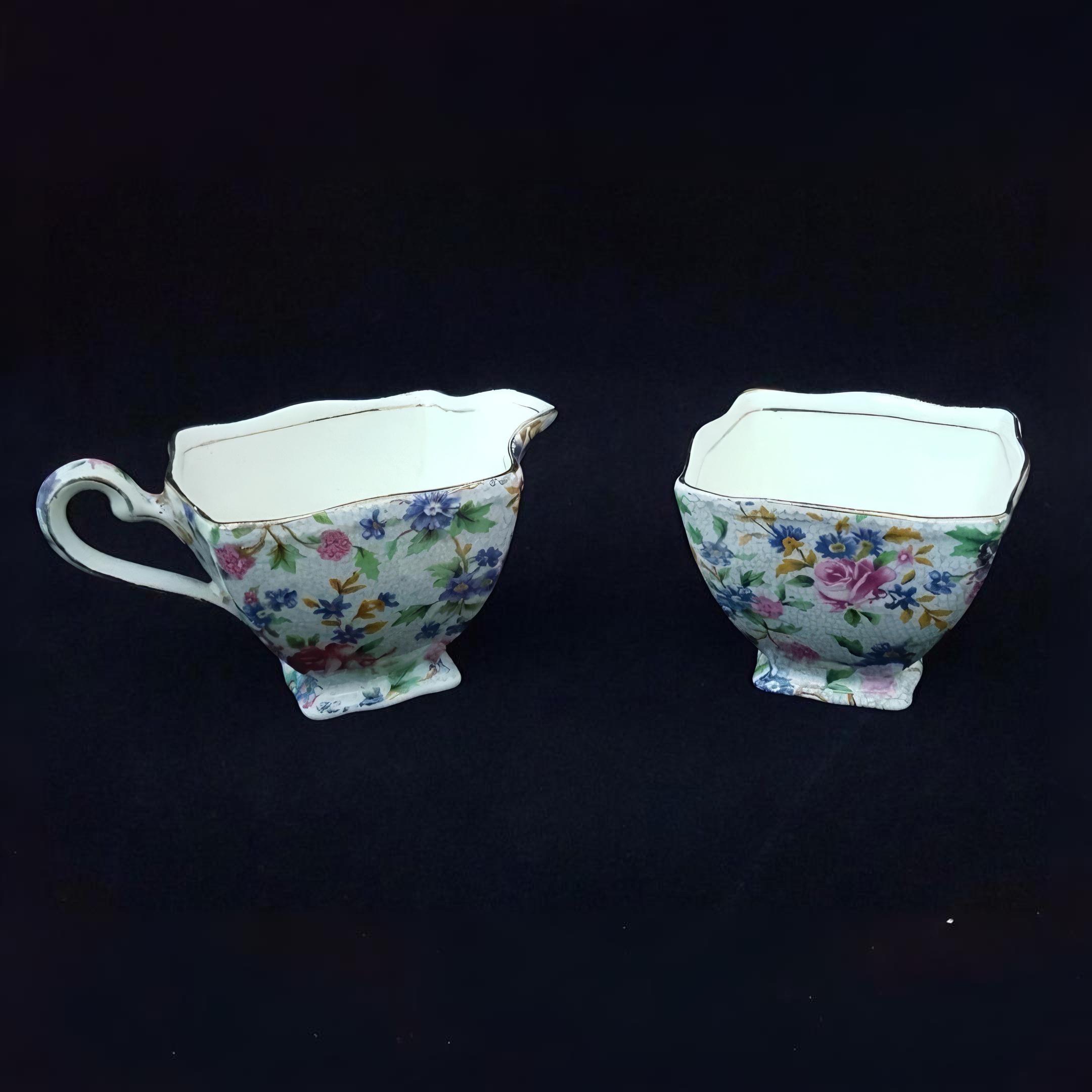 Royal Winton Grimwades Old Cottage Chintz Creamer & Sugar Bowl – Ascot Shape – Made in England