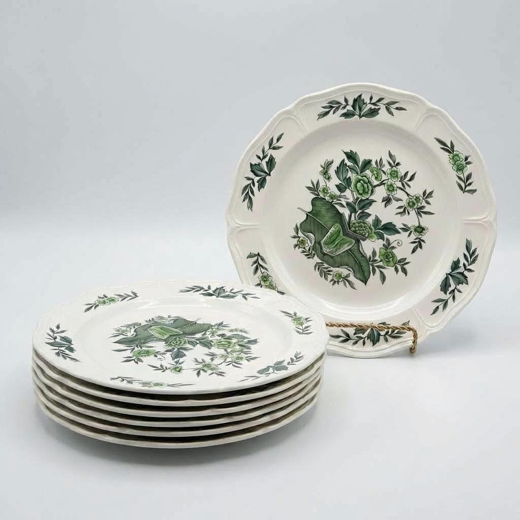 Introduced in the early postwar years, Green Leaf reflects Wedgwood’s enduring commitment to refined yet practical English tableware. The Queen’s Shape silhouette, with its gently molded rim and balanced proportions, became a hallmark of mid century production at Barlaston and remains highly regarded among collectors.