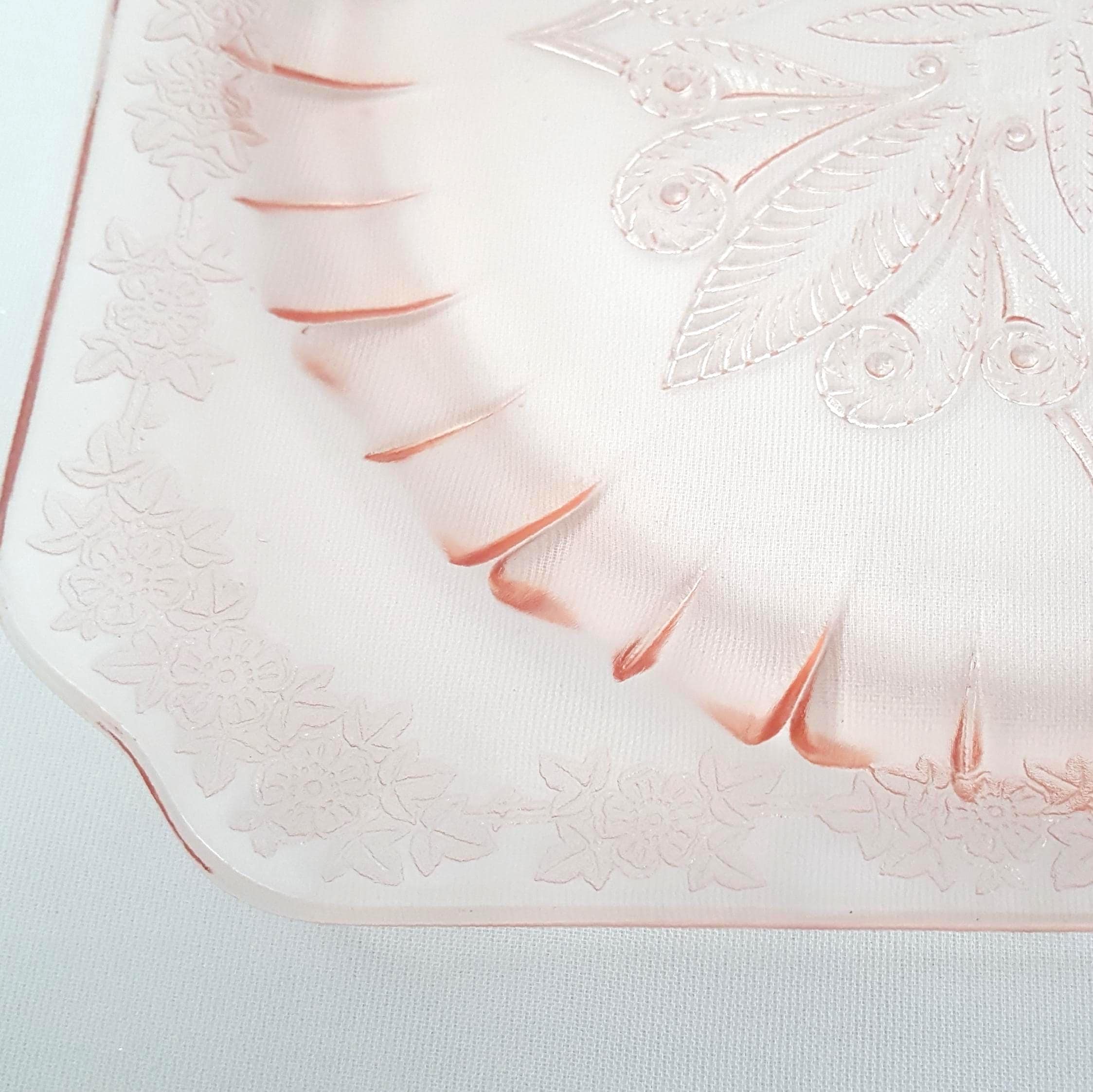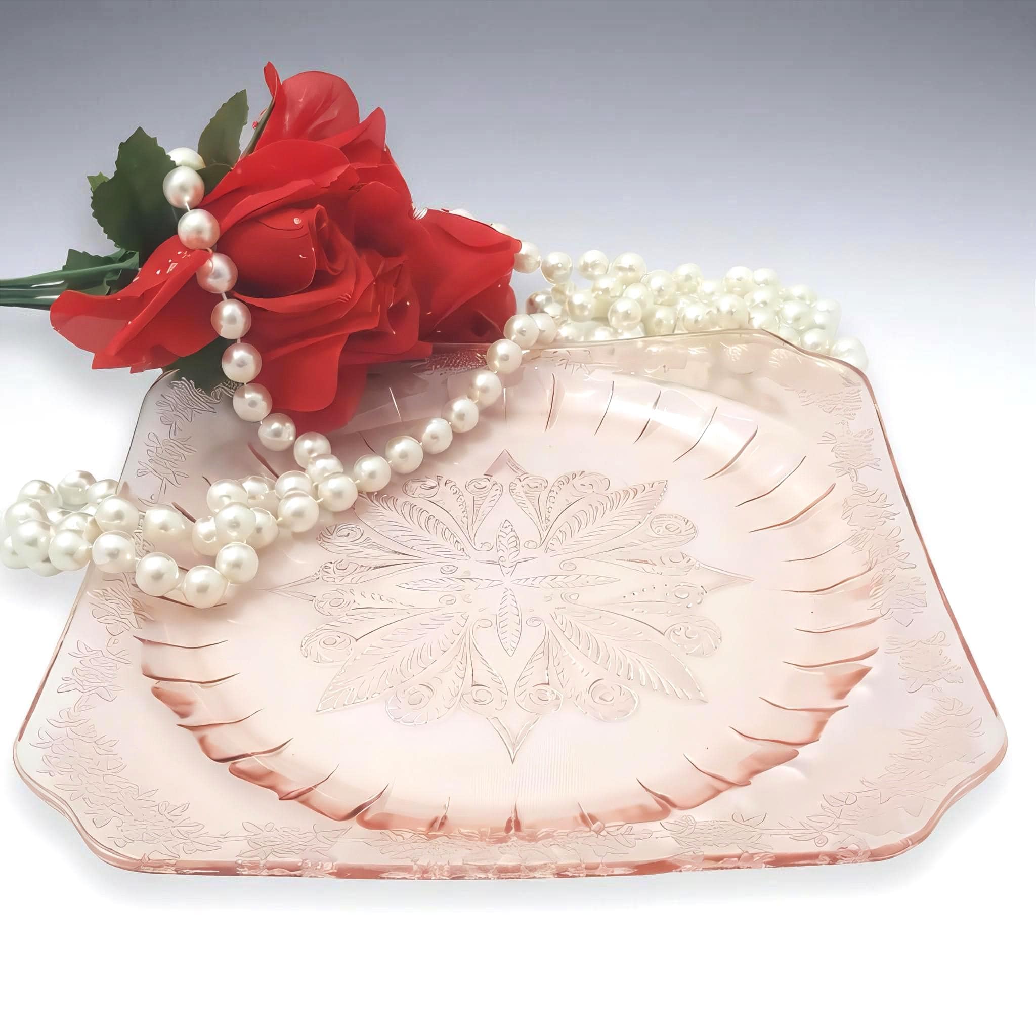 Jeannette “Adam” Pink Depression Glass Cake Plate – Art Deco USA, 1932–1934