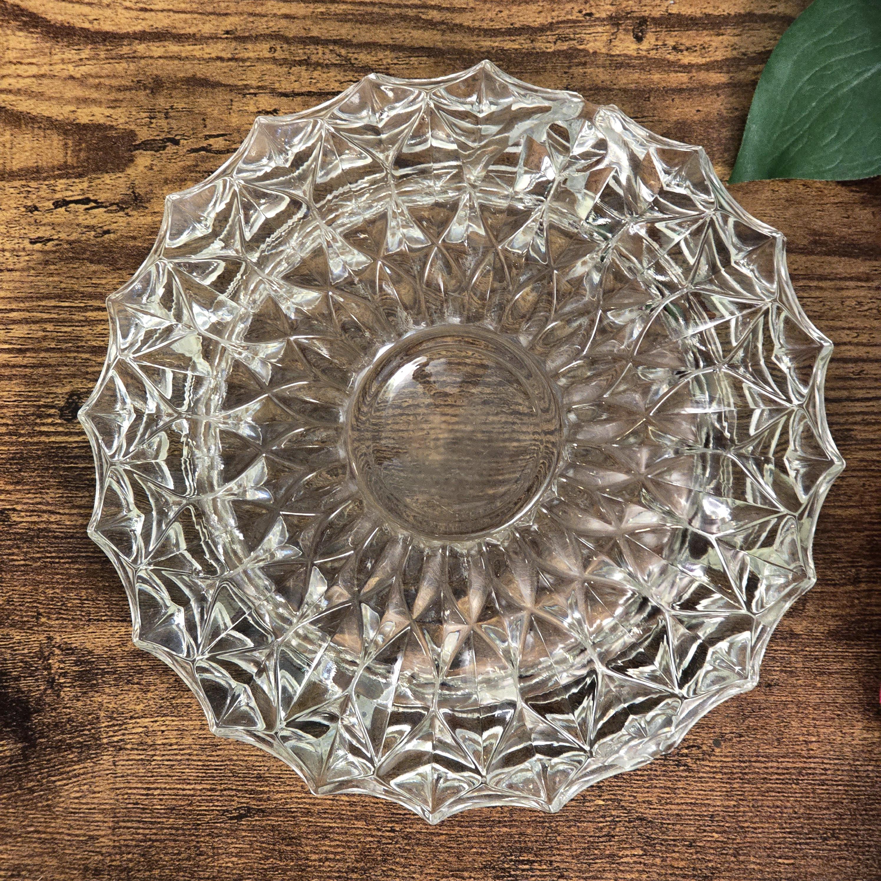 A substantial vintage cut crystal ashtray from Val Saint Lambert’s Nicole Giftware line, crafted in Belgium with deep prismatic cutting and a wide, sculptural form. The radiating facets, engraved center well, and exceptional clarity highlight the refined workmanship associated with mid twentieth century luxury crystal.