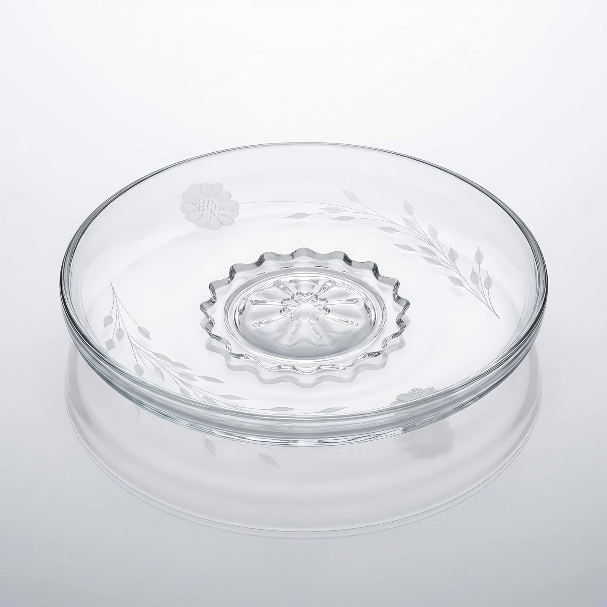 • Hand etched floral and leaf decoration with molded raised starburst base
