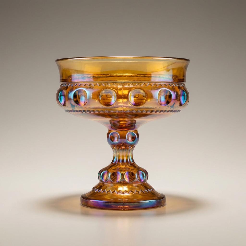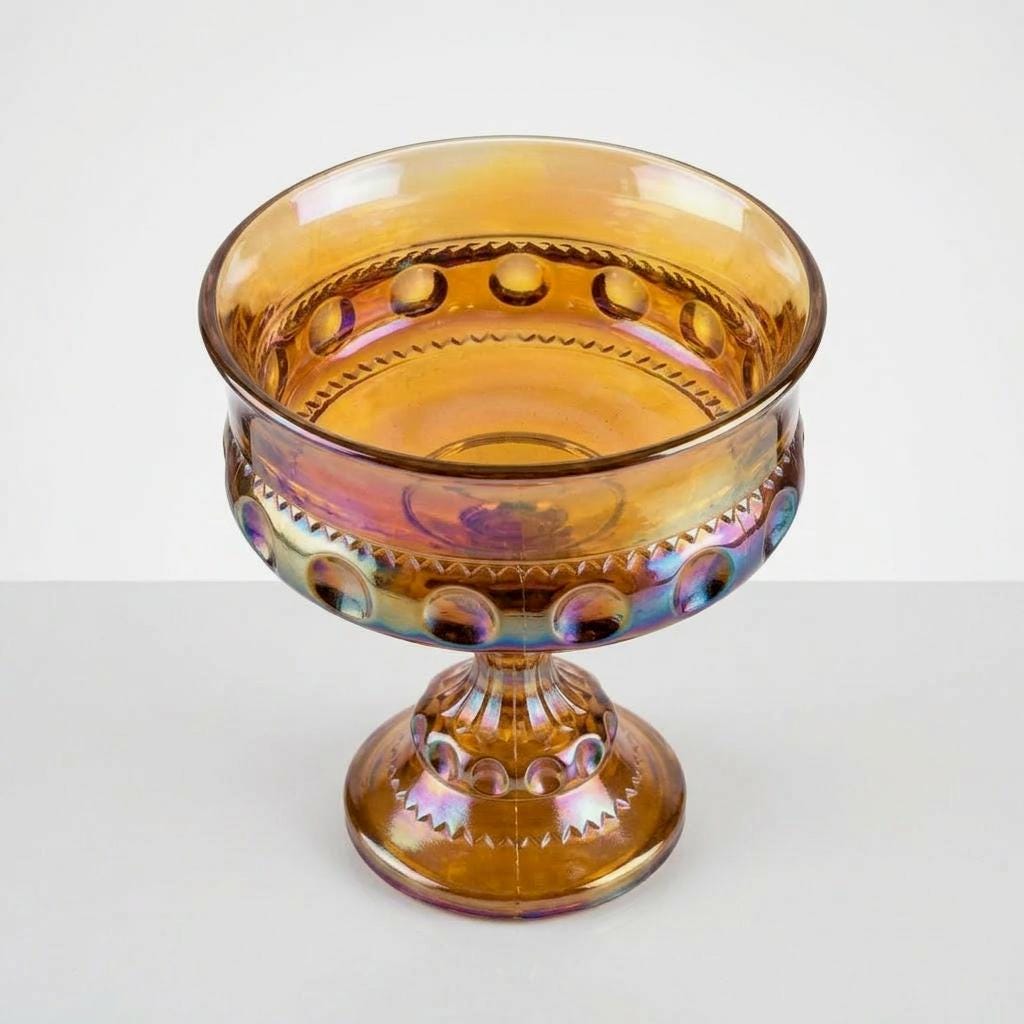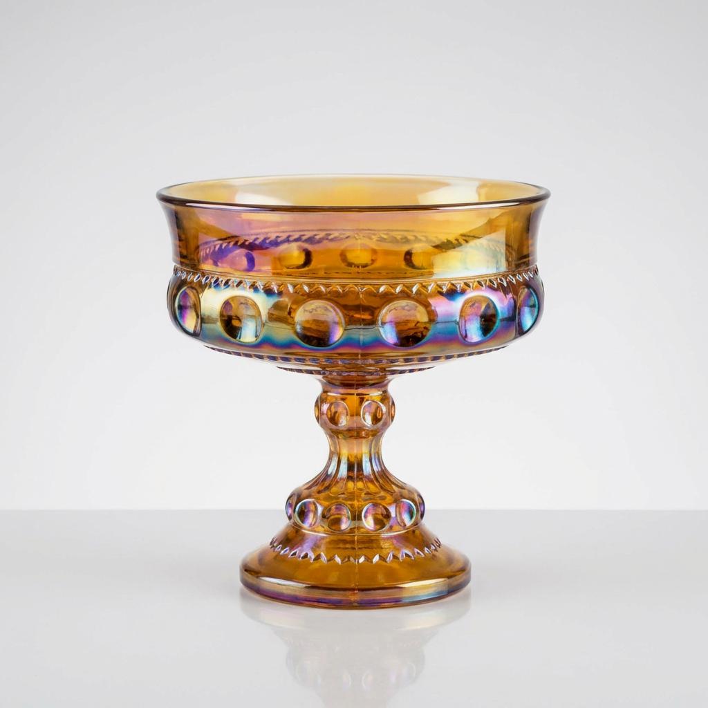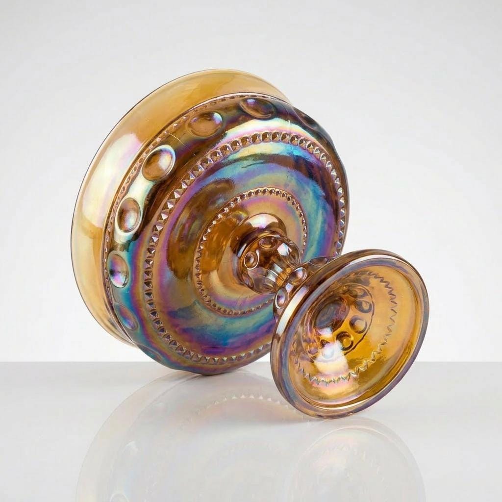Indiana Glass Thumbprint Pedestal Candy Dish Bowl – Marigold Iridescent Carnival Glass