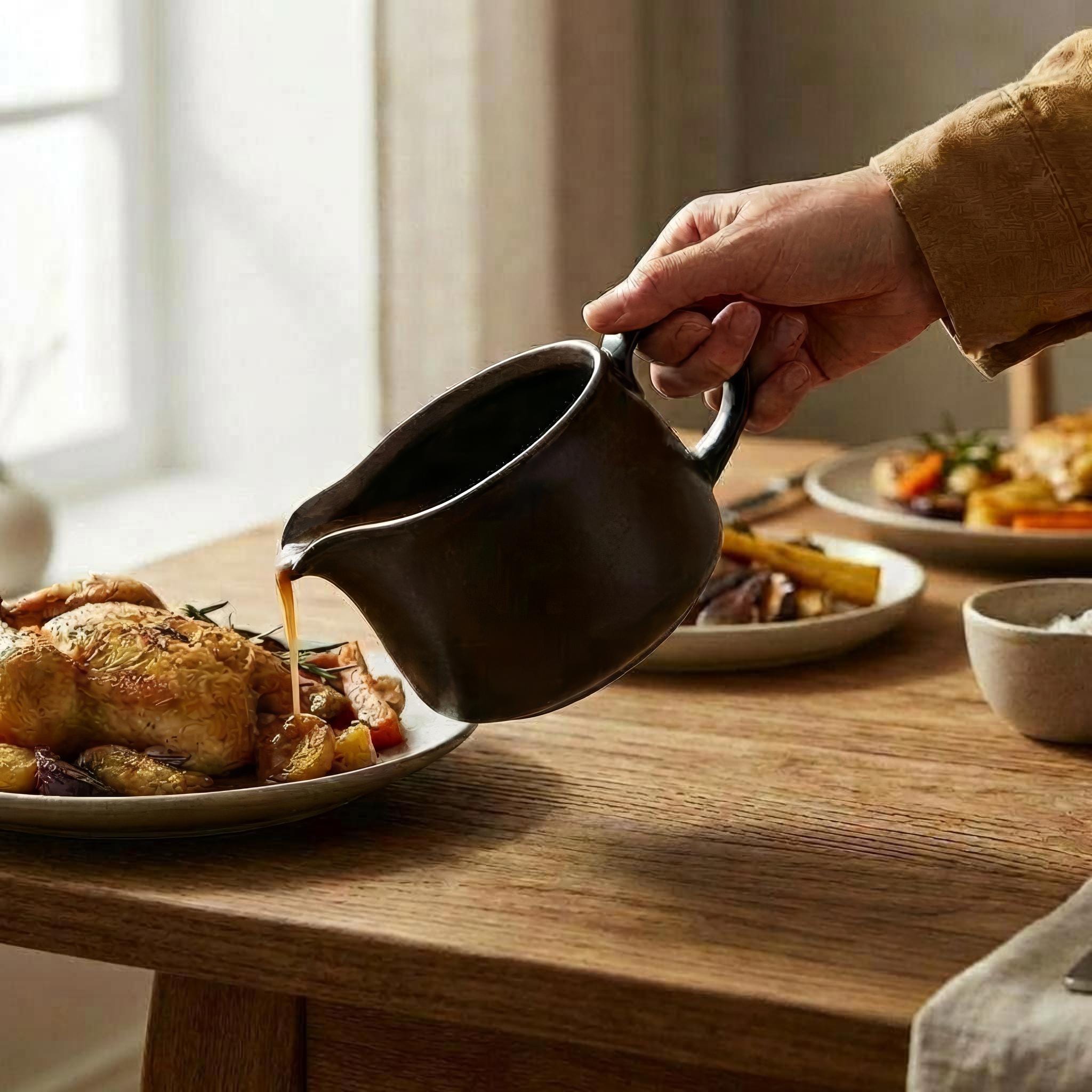 Independent English stoneware makers produced a wide range of durable tableware during the mid-20th century, often marked simply by form, glaze, and impressed backstamps rather than prominent branding. Pieces like this gravy jug are appreciated for their timeless practicality and restrained aesthetic, fitting seamlessly into both traditional and modern table settings.