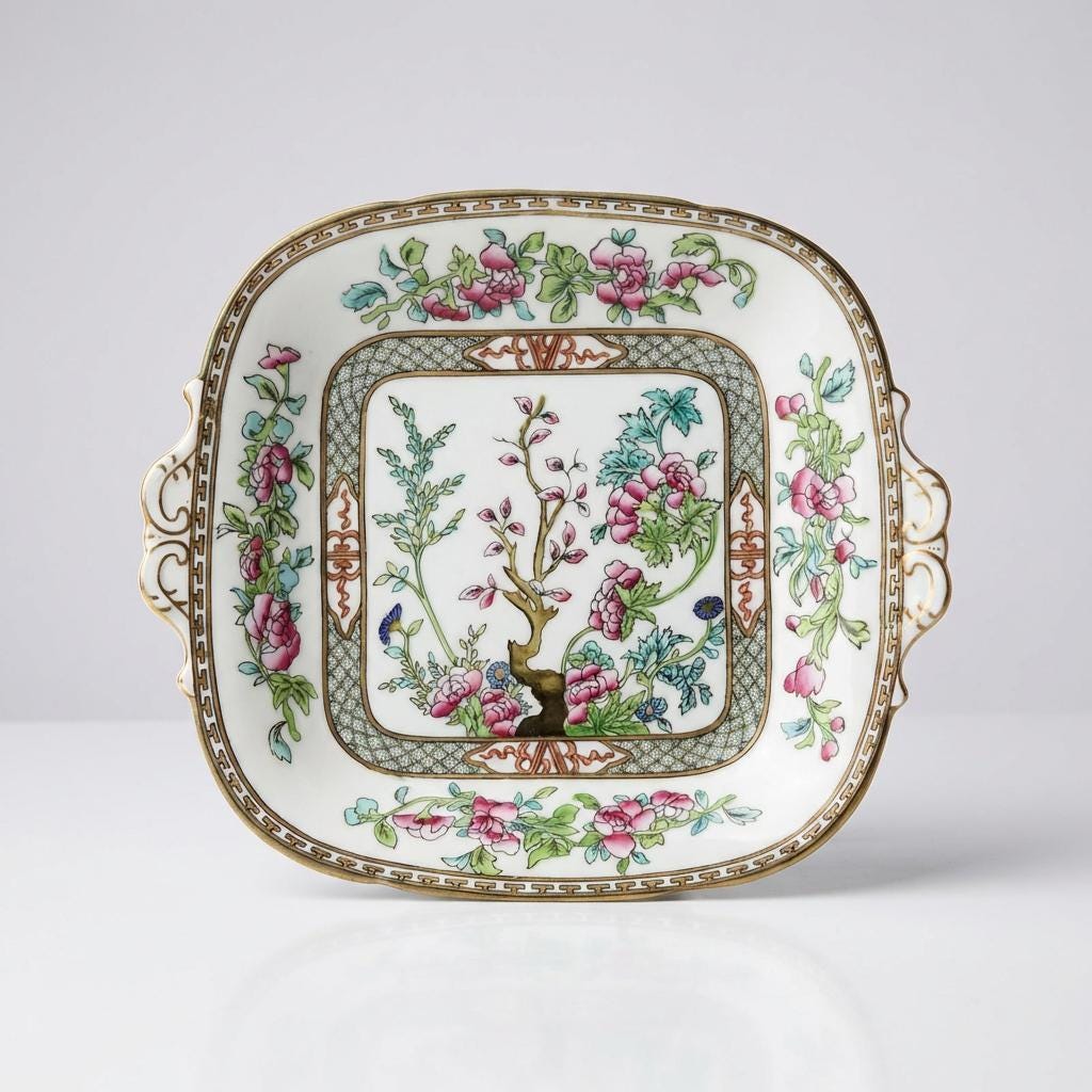 The Indian Tree pattern became one of the most enduring interpretations of the earlier Chinese Tree of Life design in English ceramics. Coalport’s fine porcelain examples from the late nineteenth to early twentieth century remain highly regarded for their clarity of transfer, vibrant coloration, and refined gilding.