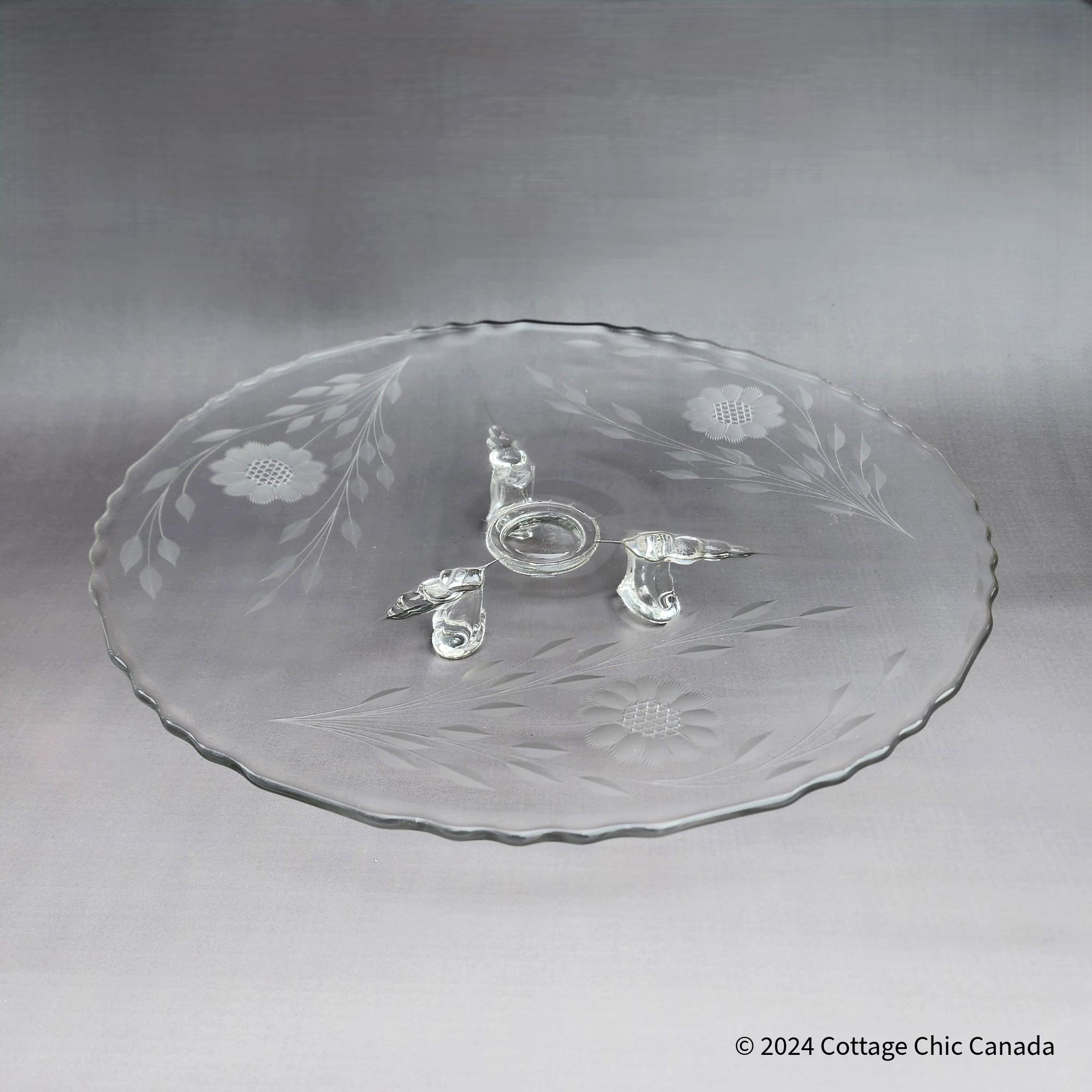Hughes Cornflower Three-Footed Cake Plate – Imperial Glass Etched Crystal, USA & Canada